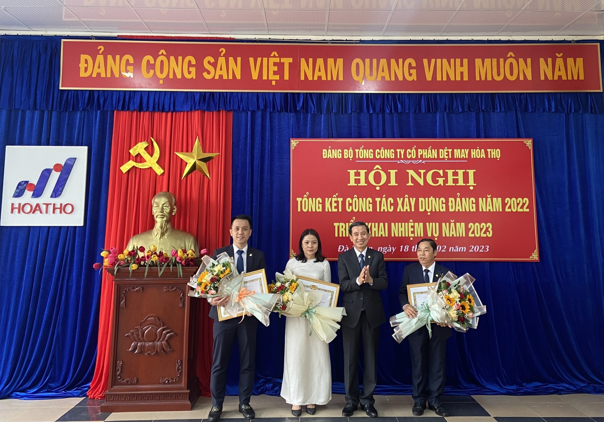 Sáng ngày 18.02.2023, Đảng bộ Tổng Công ty CP Dệt May Hòa Thọ cùng đại diện Lãnh đạo Quận ủy, các ban Xây Dựng Đảng Quận ủy Cẩm Lệ và gần 200 Đảng viên của Tổng Công ty đã tổ chức Lễ Báo Công Dâng Bác tại Bảo tàng Hồ Chí Minh chi nhánh Quân Khu 5.