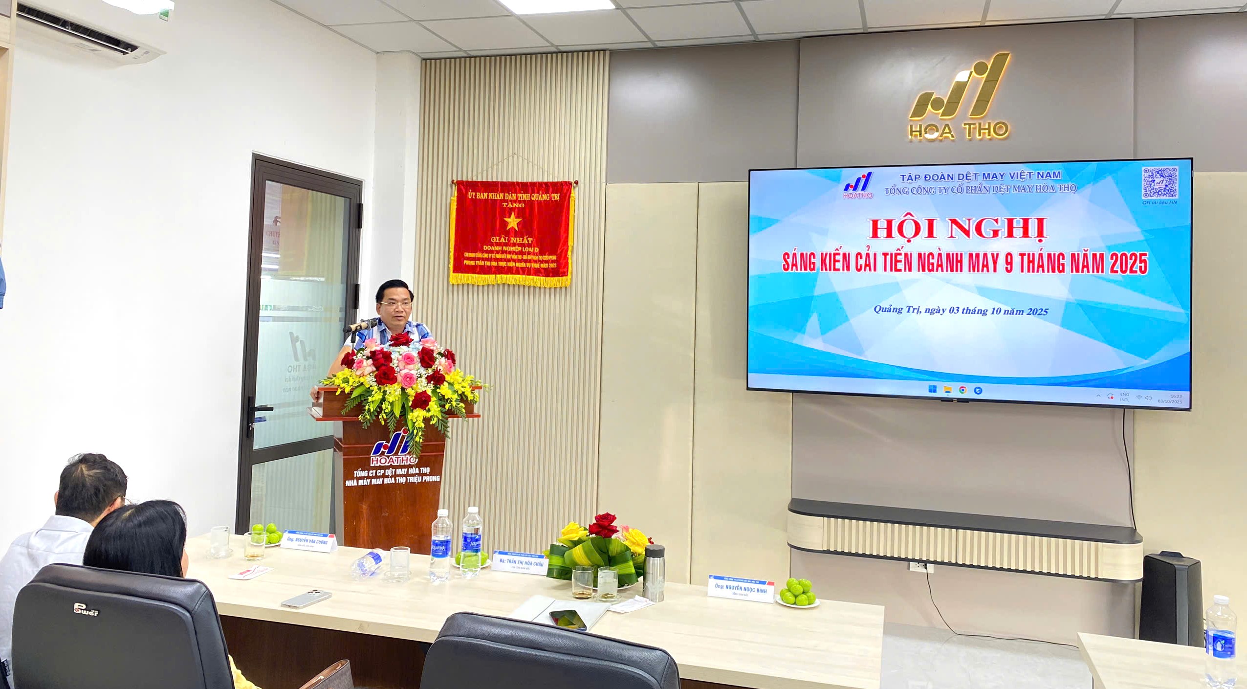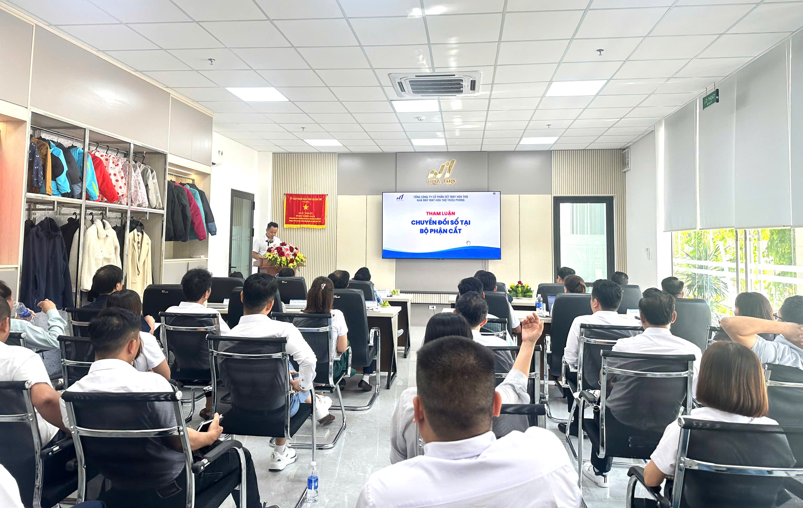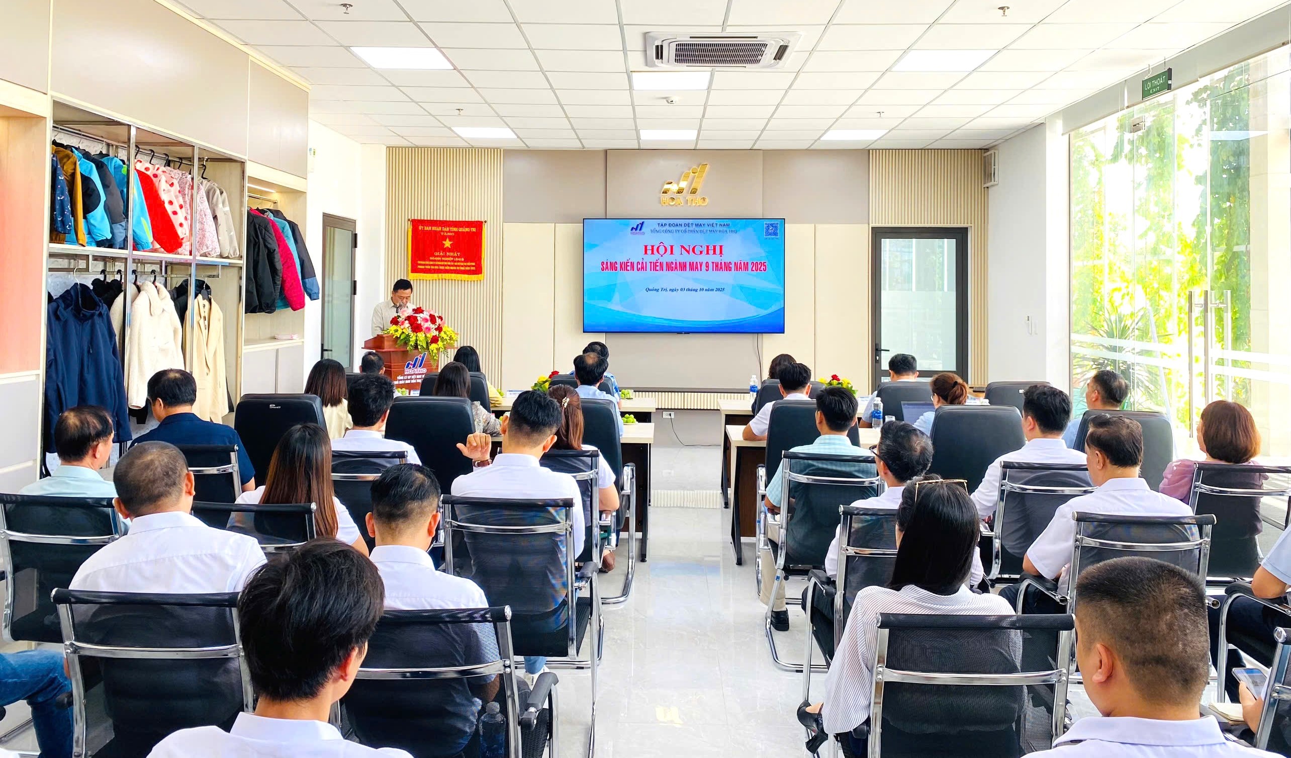 Ngày 03/10/2025, tại Nhà máy May Hòa Thọ - Triệu Phong, Tổng Công ty CP Dệt May Hòa Thọ đã tổ chức Hội thảo Sáng kiến – Cải tiến sản xuất ngành may năm 2025 với sự tham dự của Ban Lãnh đạo Tổng công ty, Giám đốc các Nhà máy thành viên và đội ngũ cải tiến.
