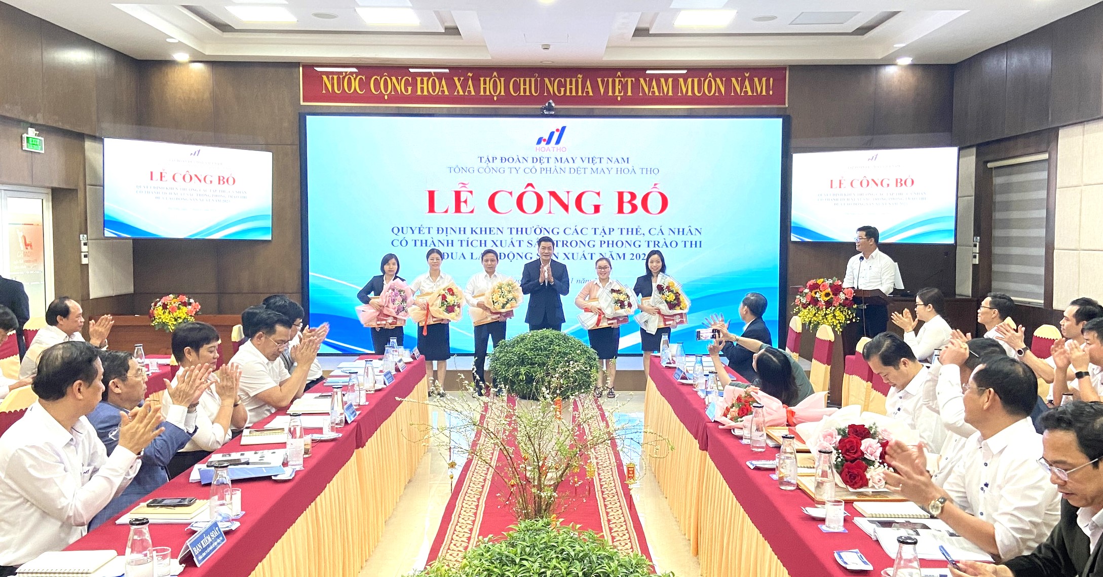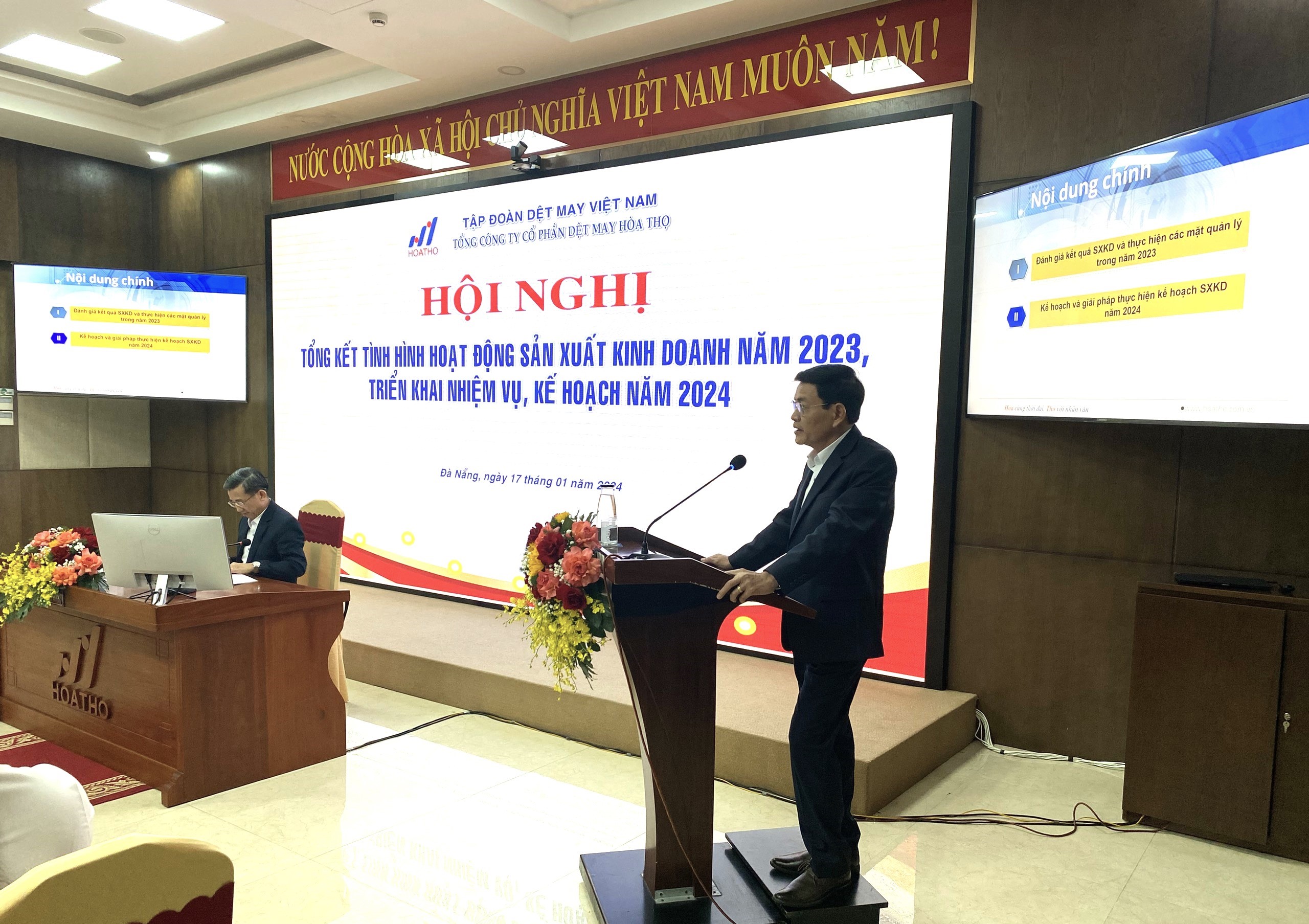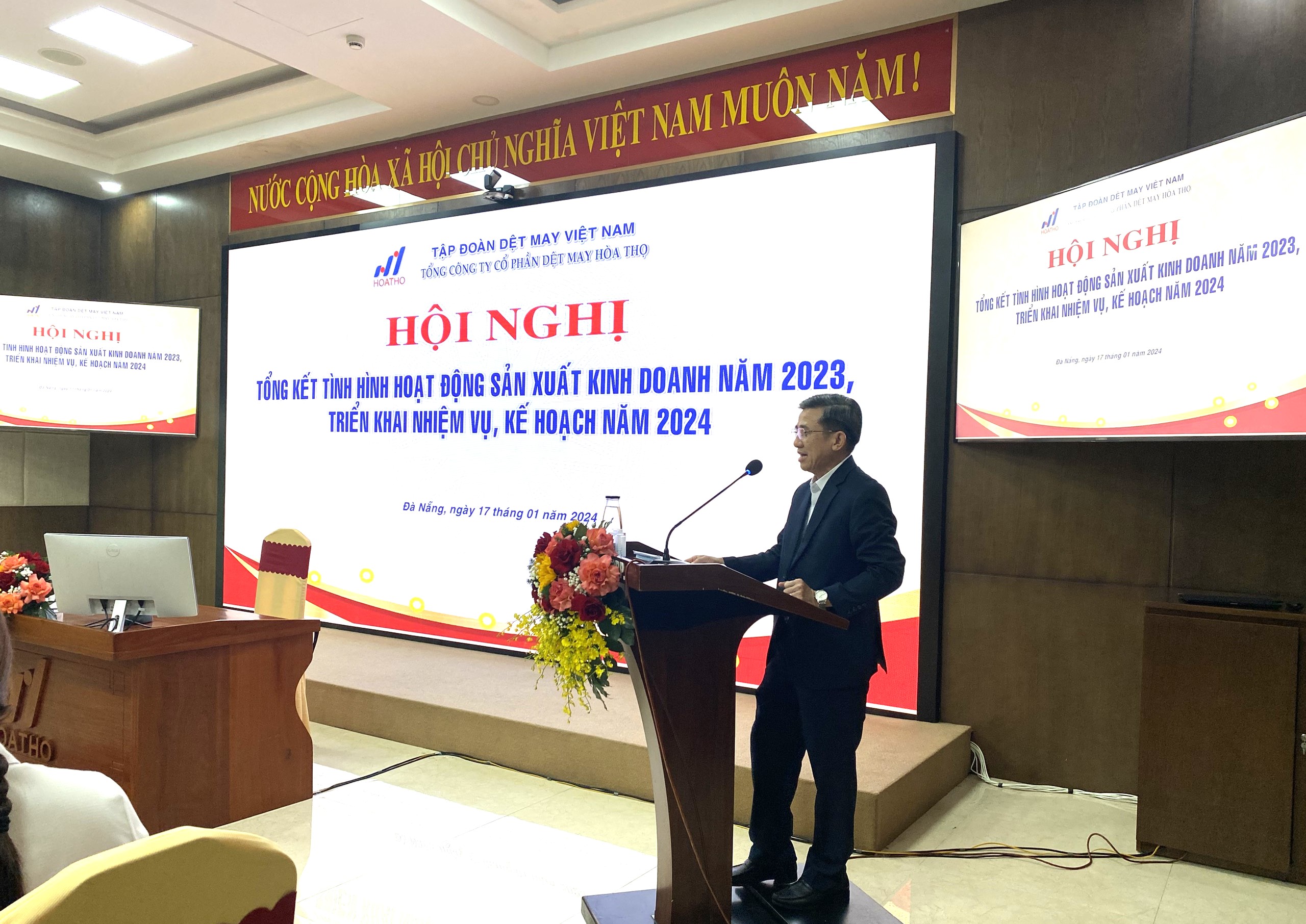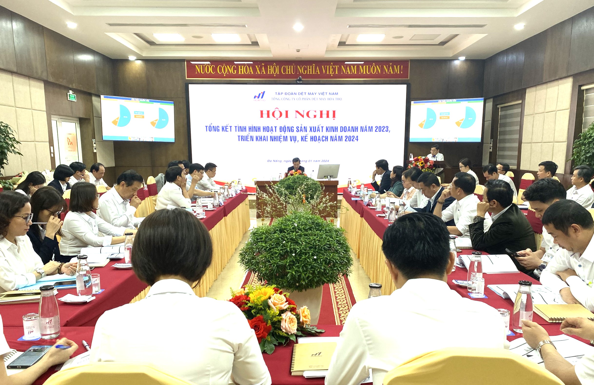 Chiều ngày 17/01/2024, Tổng Công ty Cổ phần Dệt May Hòa Thọ tổ chức Hội nghị Tổng kết tình hình hoạt động SXKD năm 2023 và triển khai nhiệm vụ, kế hoạch năm 2024.